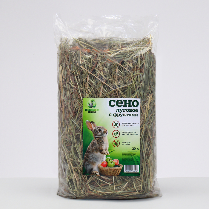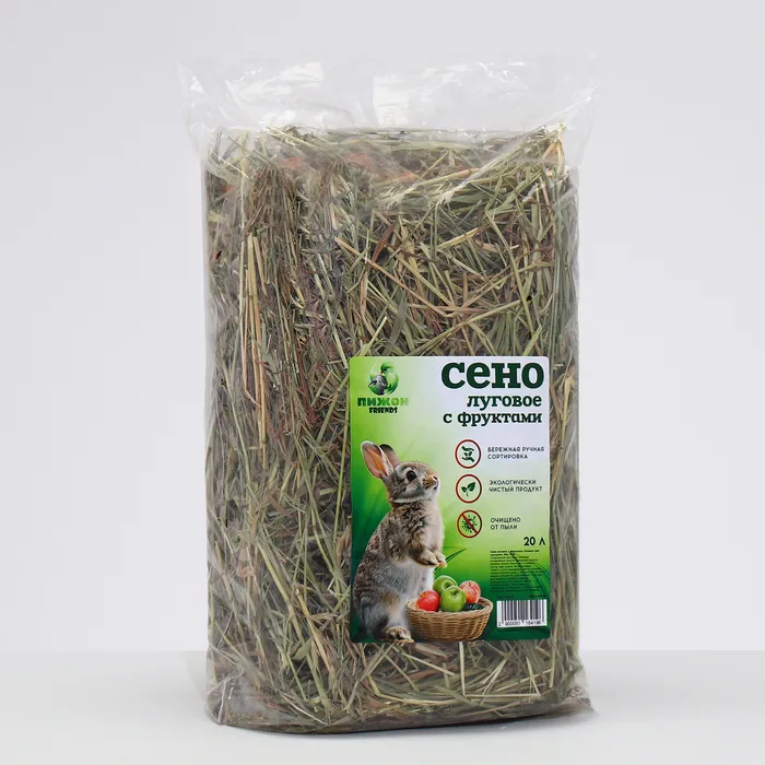 Сено луговое с фруктами «Пижон» для грызунов, 20 л, 500 г — Характеристики