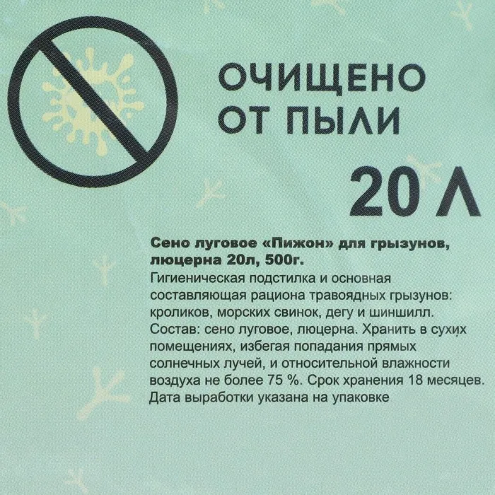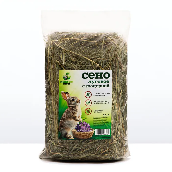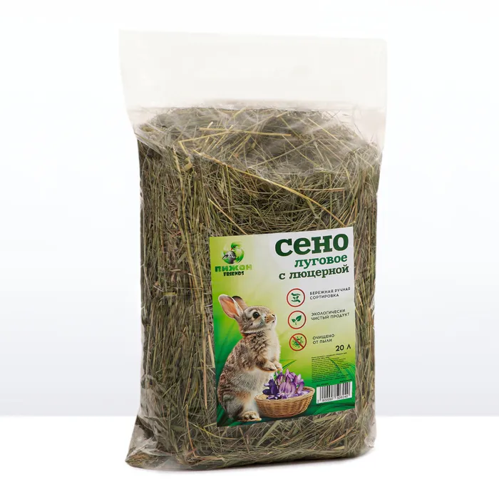 Ароматное луговое сено с люцерной для грызунов из 100% натуральных трав, станет прекрасным продуктом питания для вашего питомца!