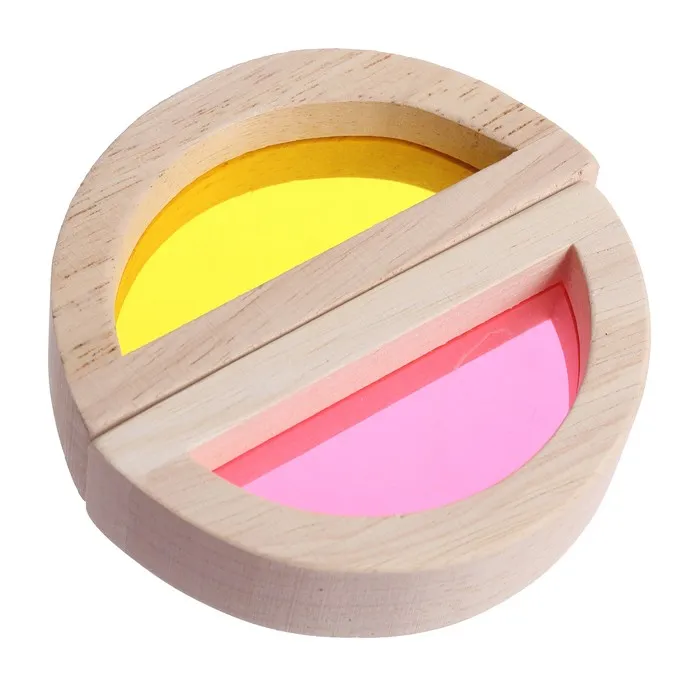 Также малыш может наблюдать за изменением цвета, наложив две детали друг на друга.