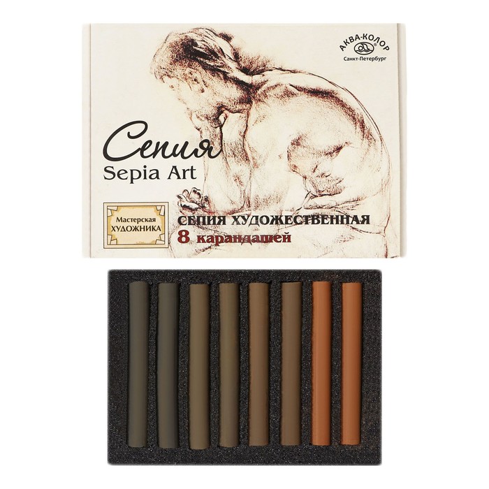 Сепия светлая/тёмная «Мастерская художника», 4 цвета, 8 шт., в картонной коробке — Характеристики