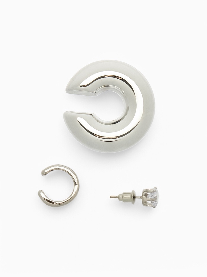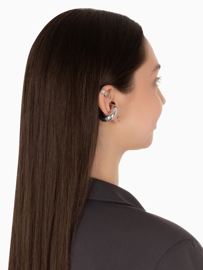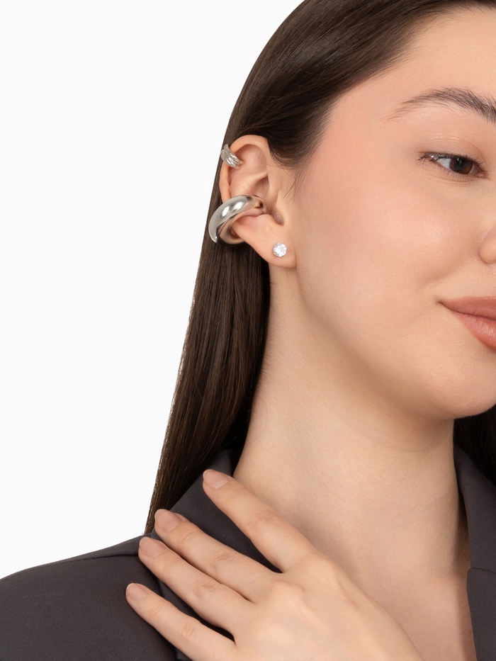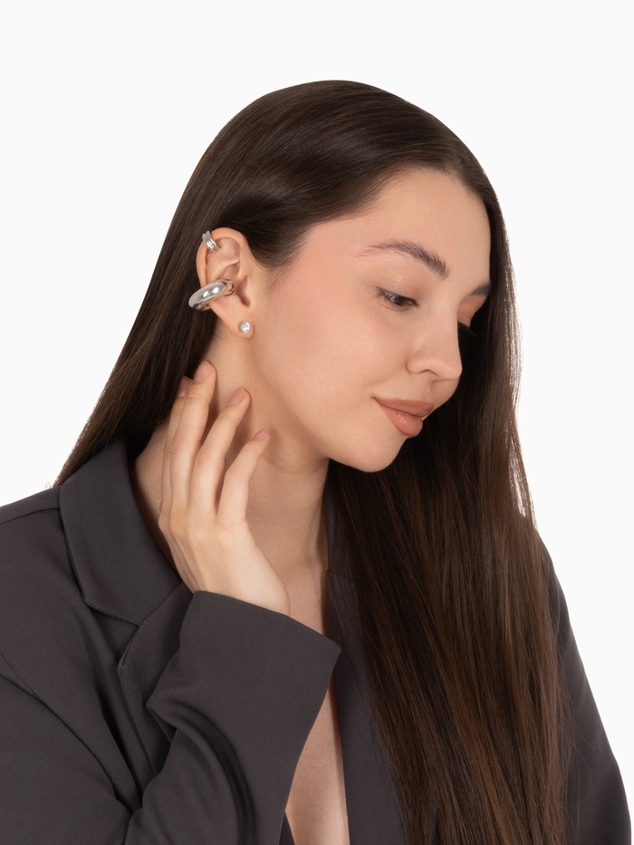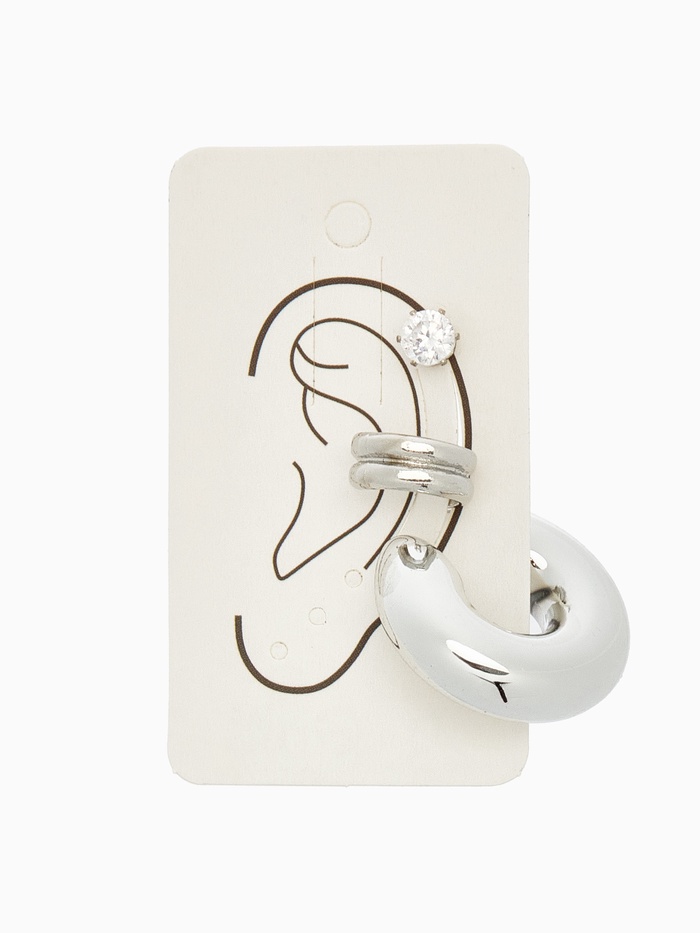 Серьга и кафф QF «Бублик», набор 3 шт. стразы, цвет серебро — Характеристики