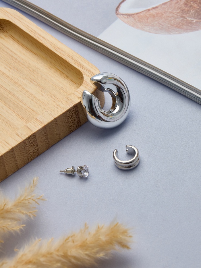 Погрузитесь в мир элегантности и стиля с набором серьг и каффов, который привнесёт свежесть в ваш образ. Этот комплект, состоящий из трёх уникальных элементов, выполнен в утончённой серебристой палитре, излучая лёгкое сияние. Благодаря разнообразию дизайна, вы сможете создать множество неповторимых комбинаций, подчеркивающих вашу индивидуальность.