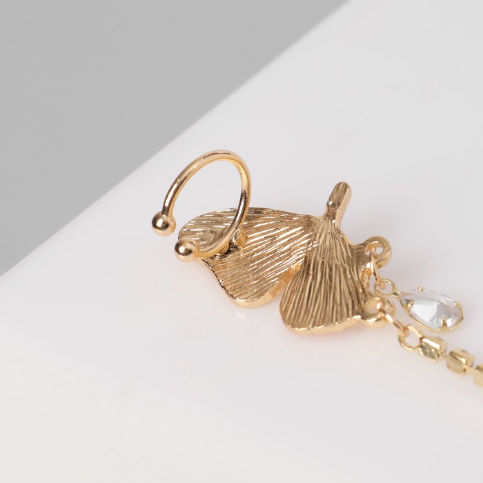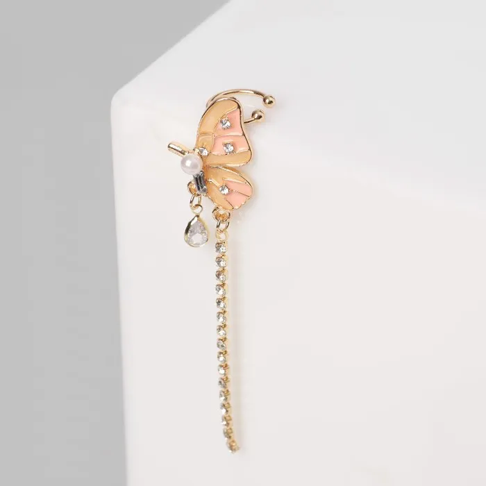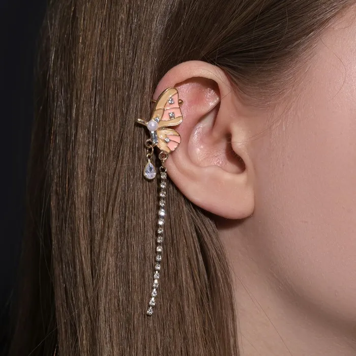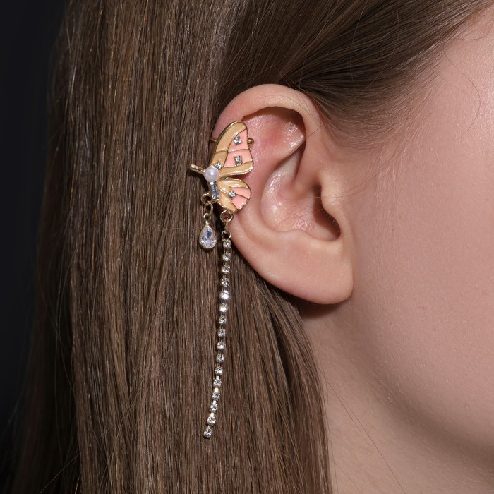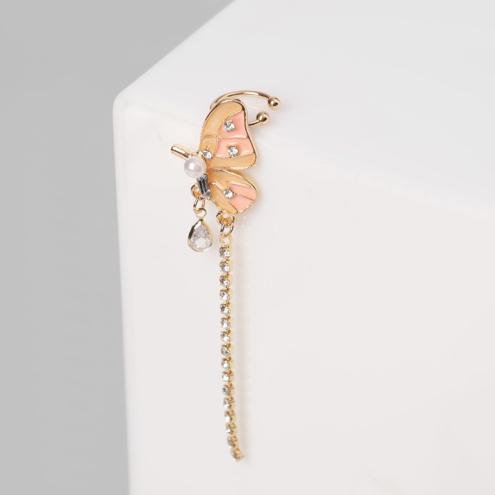 Серьга кафф «Бабочка в полёте», цвет бело-розовый в золоте — Характеристики
