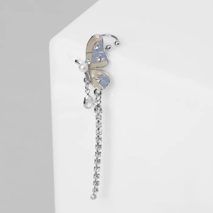 Серьга «Кафф» бабочка в полёте, цвет бело-серый в серебре — Характеристики