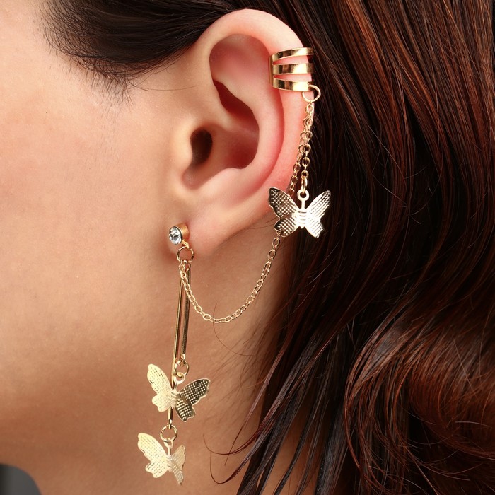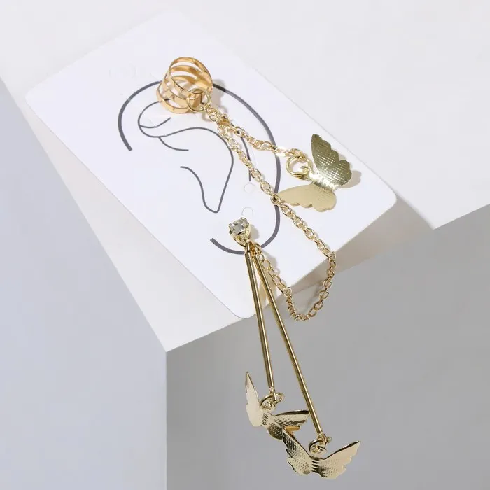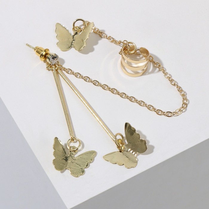 Серьга кафф «Бабочки», с цепочкой, цвет золото — Характеристики