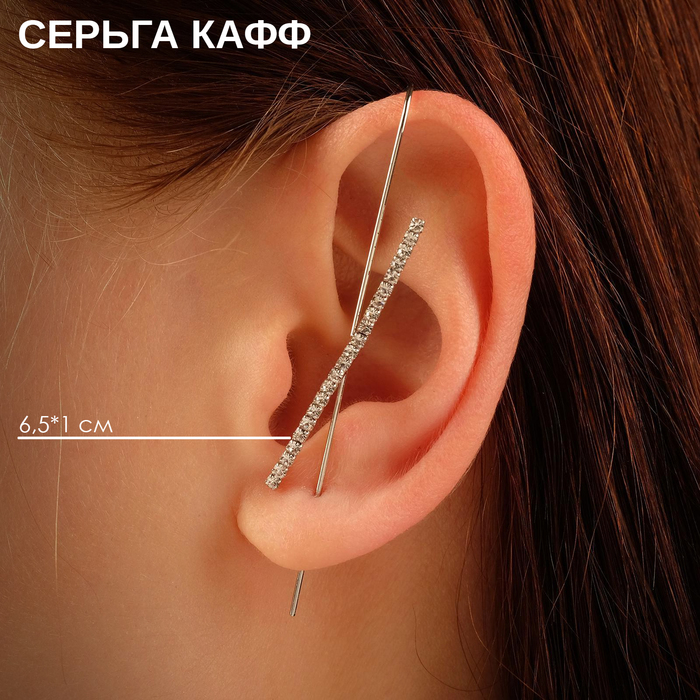 Серьга кафф «Дорожка», цвет белый в серебре — Характеристики