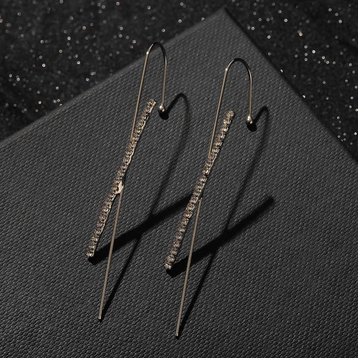 С длиной 6,5 см и украшенная изящными стразами, эта серьга привлекает внимание и добавляет нотку шика. Застёжка с проколом обеспечивает надёжную фиксацию, а минималистичный дизайн делает её универсальной для любого стиля — от casual до вечернего. Она станет отличным подарком для мамы, сестры, внучки или подруги на такие праздники, как 8 Марта, день рождения или свадьба.