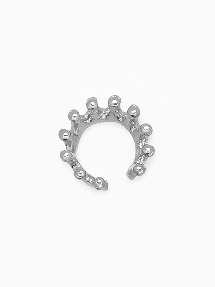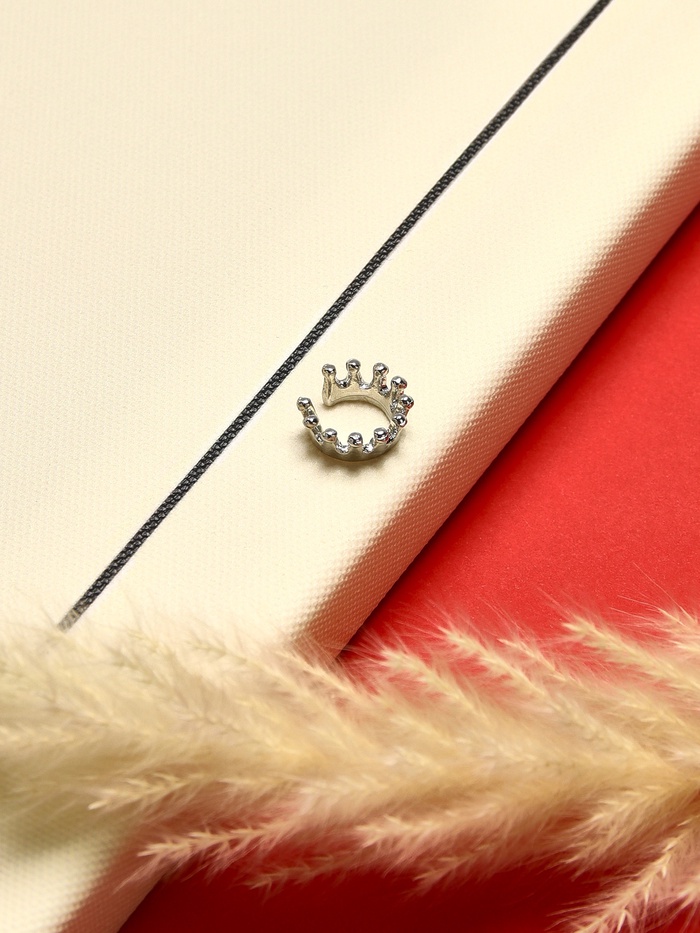 Откройте для себя уникальное украшение, которое добавит нотку королевской элегантности в ваш образ — серьгу-кафф в виде короны. С её изысканным дизайном и серебристым оттенком, это украшение станет не только стильным дополнением, но и символом вашей индивидуальности.