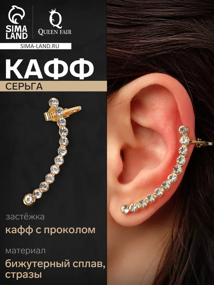 Изготовленная из прочного бижутерного сплава с металлическим основанием, серьга сочетает в себе долговечность и лёгкость. Застёжка-кафф с проколом обеспечивает надёжную фиксацию и комфорт при носке, что особенно важно для активного образа жизни.