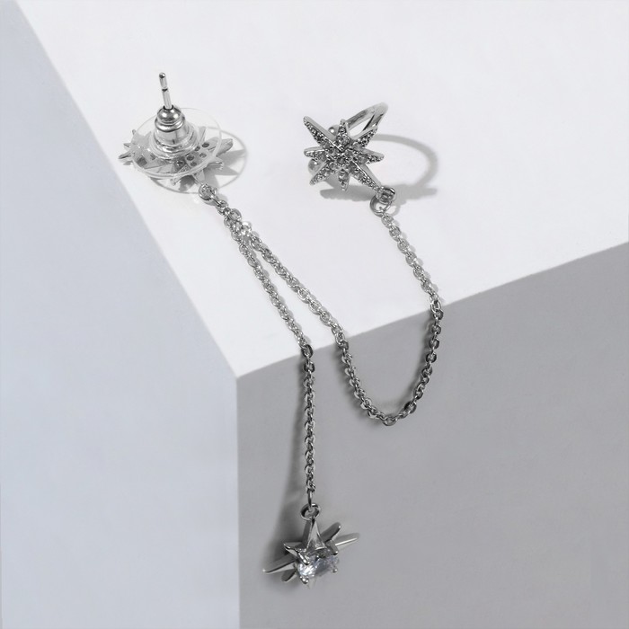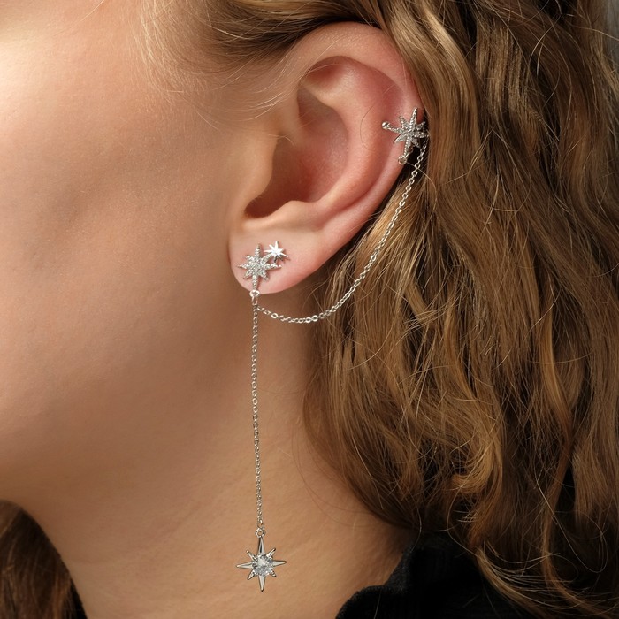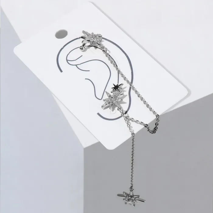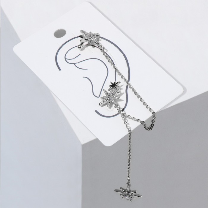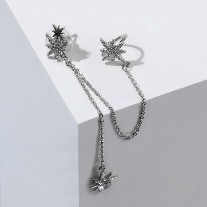 Серьга кафф «Северная звезда», с цепью, цвет белый в серебре — Характеристики