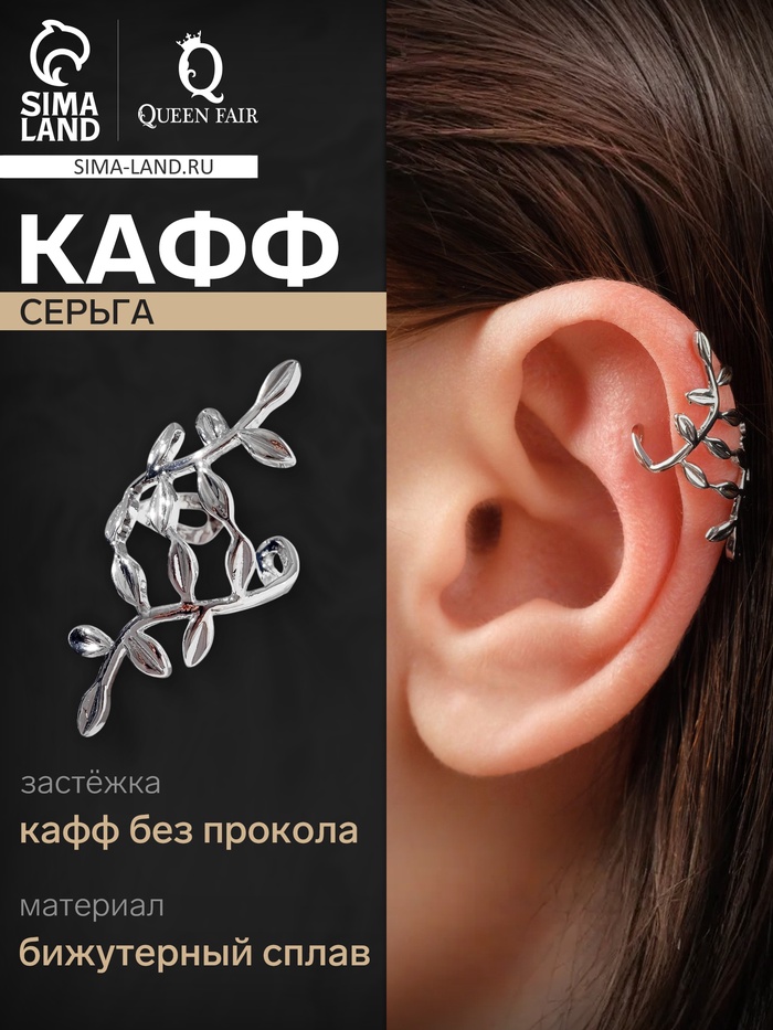 Серьга кафф «Сталь», цвет серебро — Характеристики