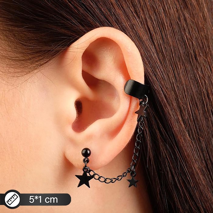 Серьга «Кафф» цепь со звездой, цвет чёрный — Характеристики