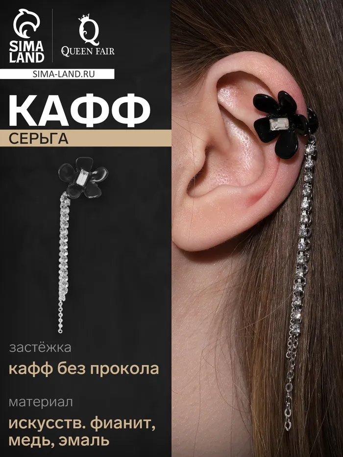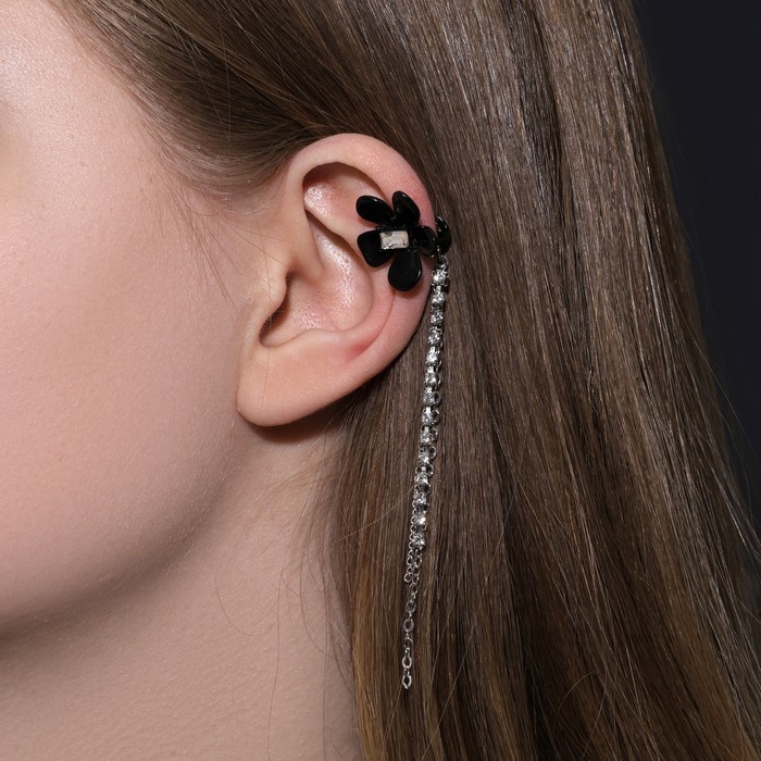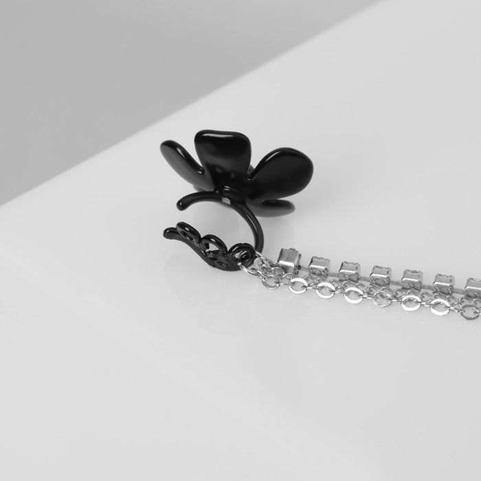 Серьга «Кафф» цветок, ромашка, цвет чёрный в серебре — Характеристики