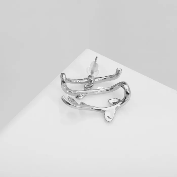 Минимализм и природная элегантность нашли отражение в серебристой серьге-каффе с изящным дизайном в виде ветви. Компактная длина всего 2,6 см делает украшение универсальным и удобным для ежедневного ношения, при этом оно привлекает внимание тонкой проработкой деталей и лёгкой воздушностью образа.