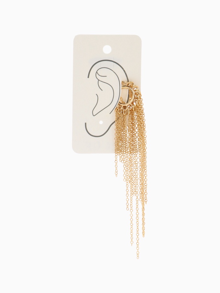Изящная каффа длиной 10 см в золотистом оттенке привлекает внимание своей оригинальностью и лёгкостью. Конструкция без прокола позволяет легко и комфортно носить украшение, создавая эффект струящегося водопада из металлических цепочек. Такой аксессуар станет выразительным акцентом в любом образе, подчёркивая индивидуальность и современный стиль.