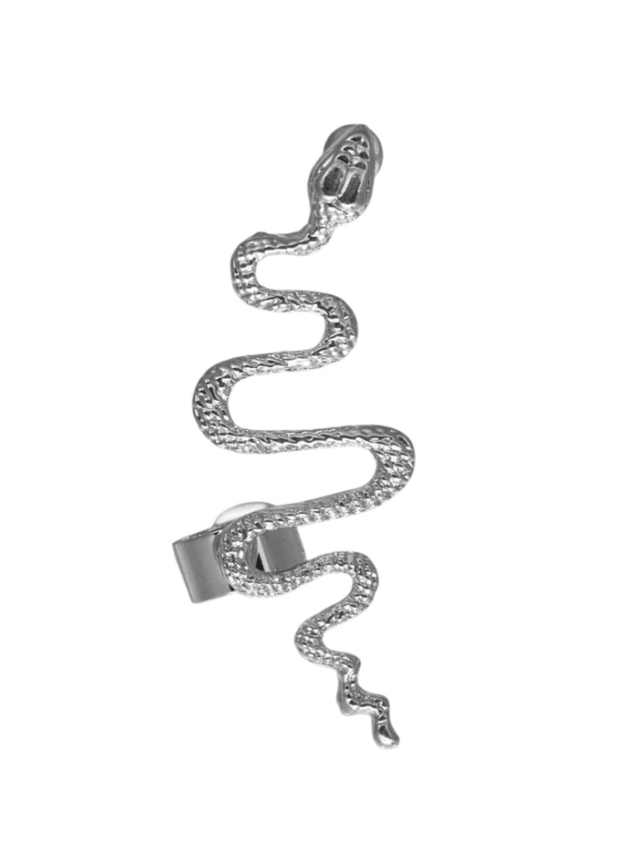 Серьга «Кафф» змея анаконда, цвет серебро