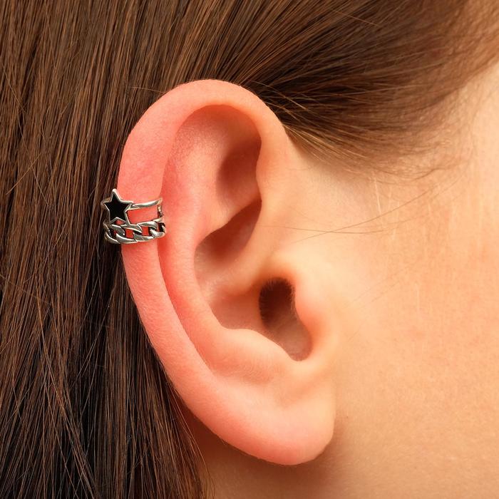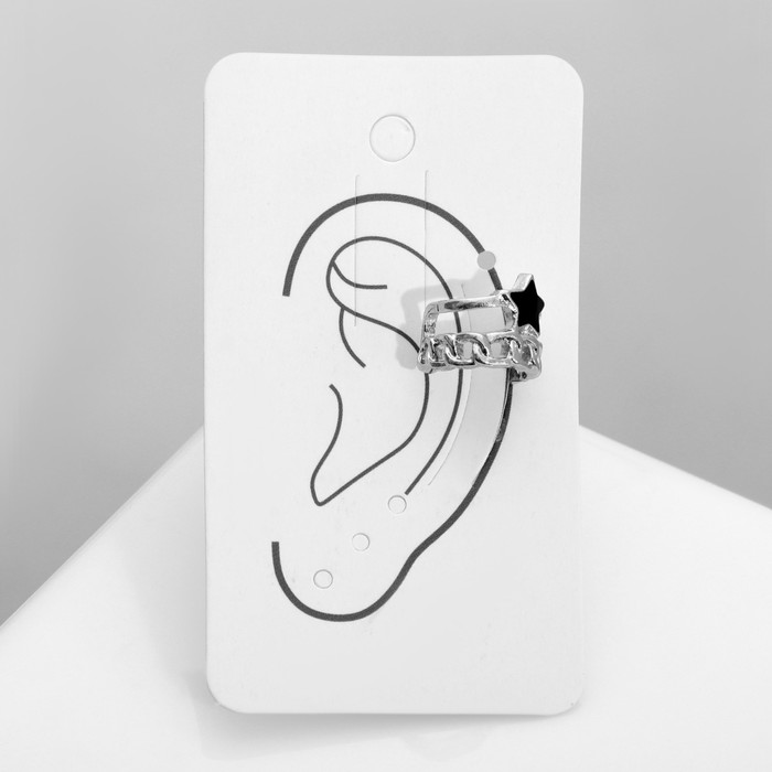 Серьга кафф «Звезда», цепь, цвет чёрный в серебре — Характеристики