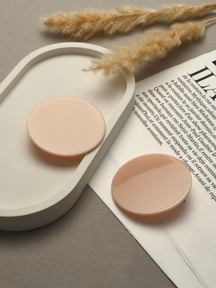 - Акриловые вставки бежевого цвета: придают серьгам лёгкость и современный стиль, идеально подходящий для разных образов.