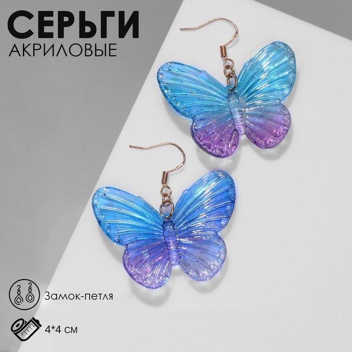 Серьги акриловые «Бабочка» весенняя, цвет фиолетово-голубой в золоте — Характеристики