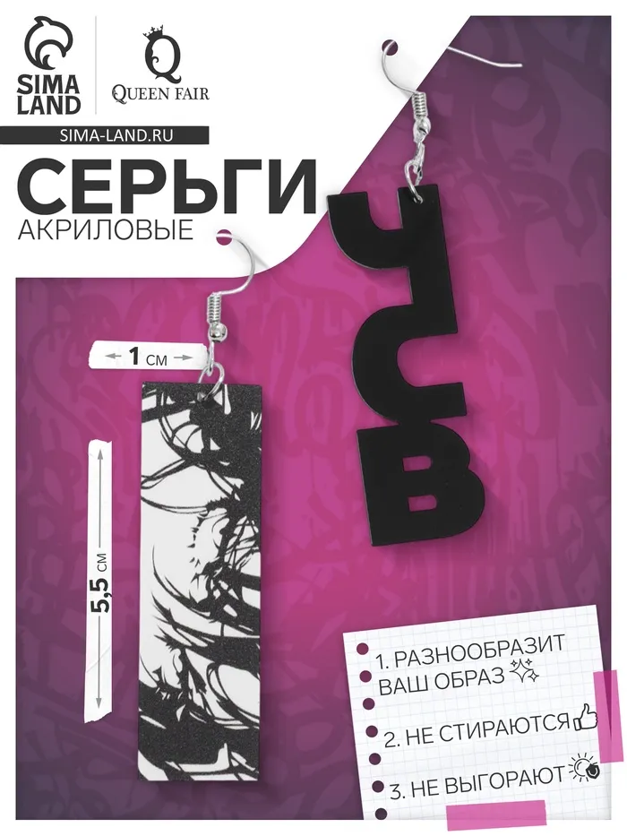 - Современный дизайн: акриловые вставки с надписью «ЧСВ» придают серьгам уникальность и подчёркивают индивидуальность.