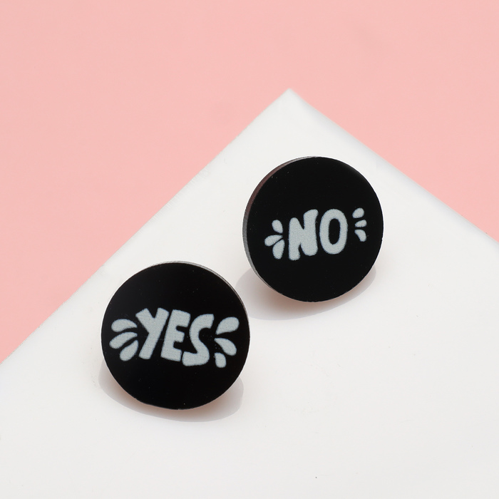Стильные серьги-пусеты с лаконичным чёрно-белым дизайном и выразительной надписью «Да/Нет» станут оригинальным акцентом в вашем образе. Минимализм формы и контрастные цвета делают эти украшения универсальным решением как для повседневной носки, так и для особых случаев.