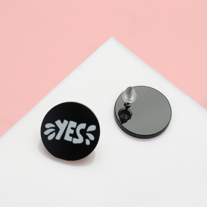 Серьги акриловые «Да/Нет» пусеты, цвет чёрно-белый в серебре — Характеристики