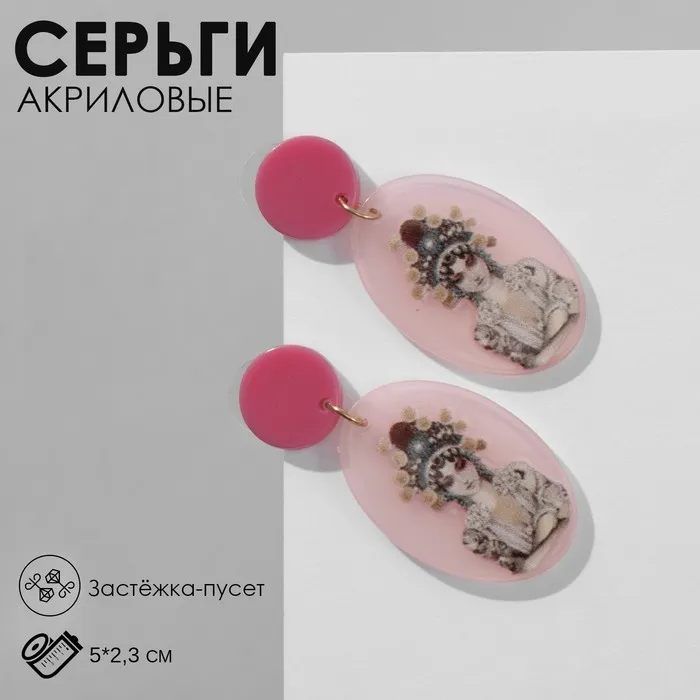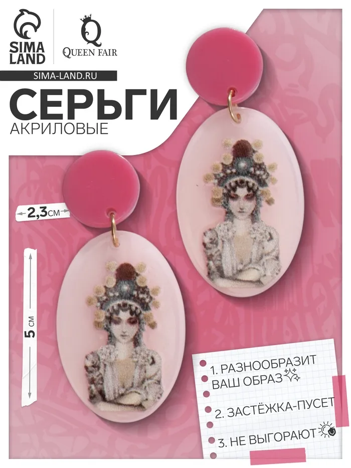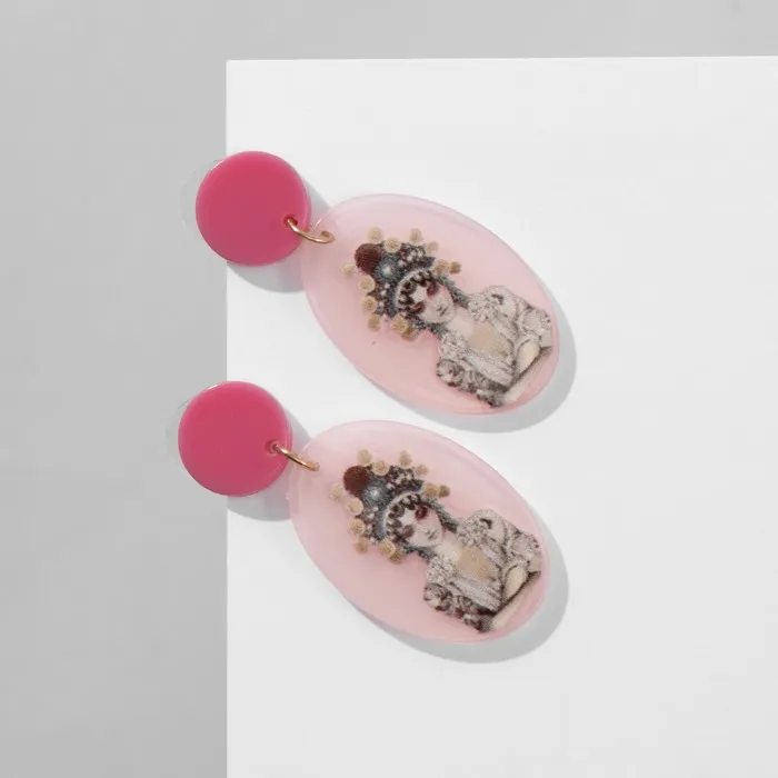 Изысканный образ в каждом штрихе — эти серьги с акриловой вставкой в виде девушки в традиционном китайском стиле привносят в образ нотки утончённости и яркой индивидуальности. Нежные розовые оттенки в сочетании с золотистой металлической основой создают гармоничное сочетание, которое легко дополнит как повседневный, так и праздничный наряд.