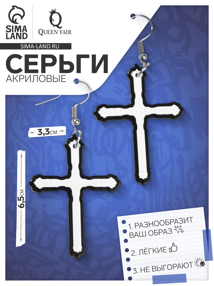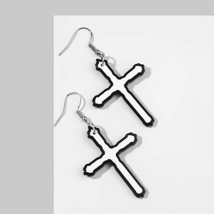 Серьги акриловые «Крестики» контур, цвет чёрно-белый в серебре — Характеристики