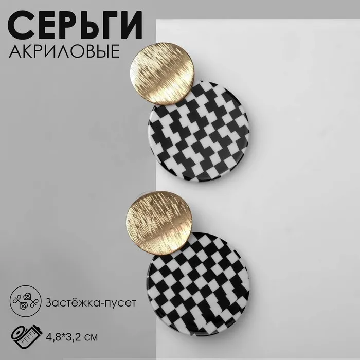 Серьги акриловые «Круг», цвет чёрно-белый в золоте — Характеристики