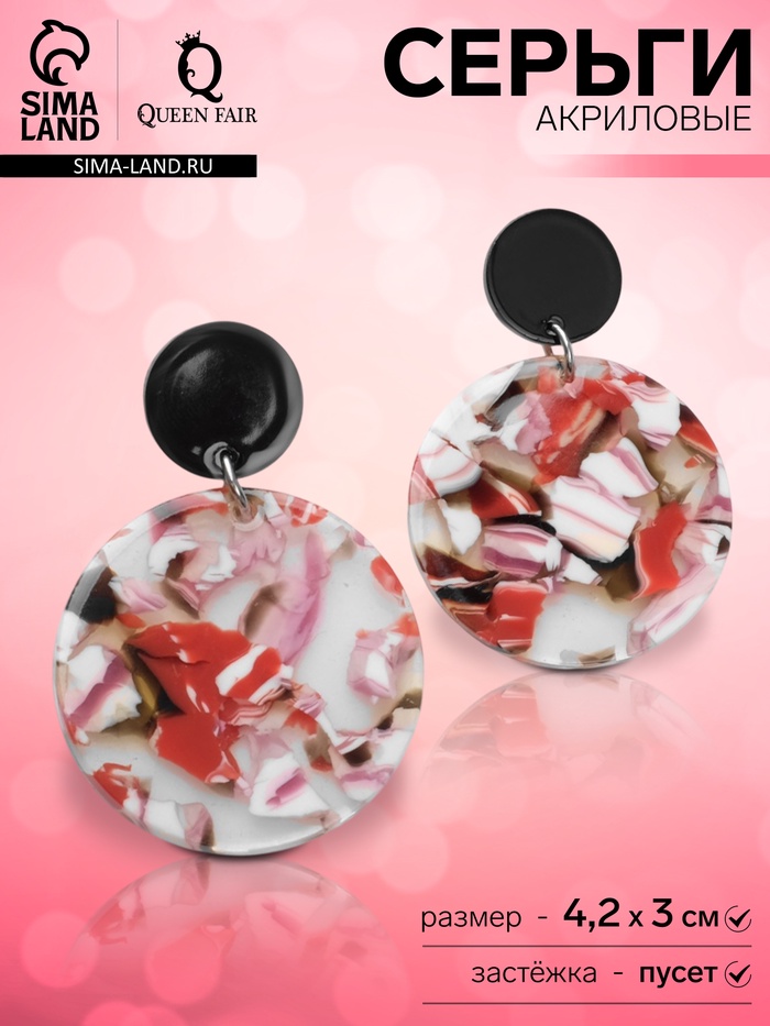 Серьги акриловые «Круг», цветные в серебре — Характеристики