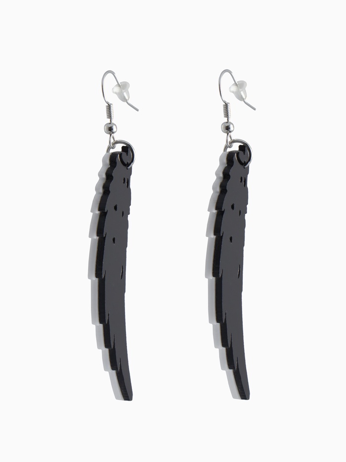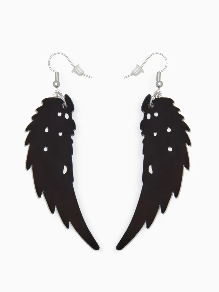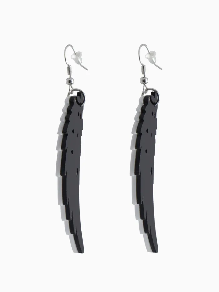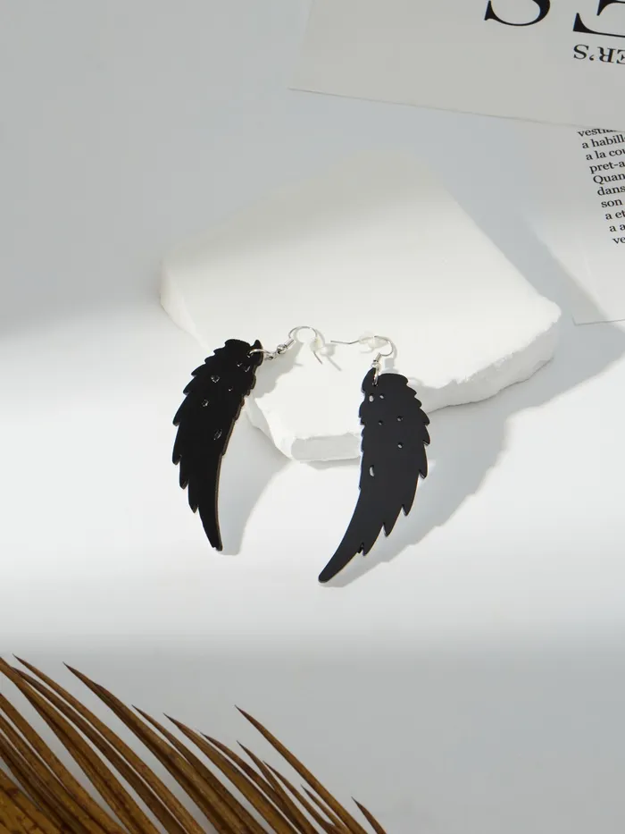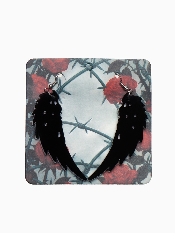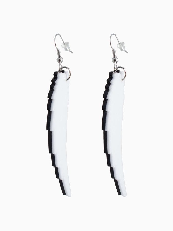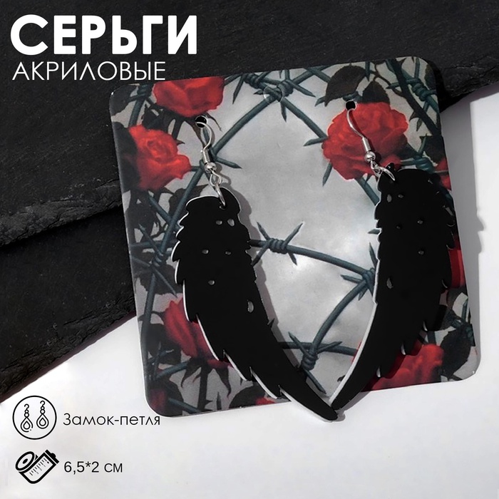 Металлическая основа с серебристым покрытием гарантирует прочность и долговечность, а замок-петля обеспечивает надёжное крепление и комфорт при ношении. Чёрно-белый акрил придаёт серьгам особый контраст и глубину, подчёркивая тематику крыльев, которая символизирует свободу, защиту и вдохновение.