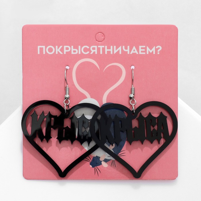 Серьги акриловые «Крыса» сердце, цвет чёрный — Характеристики
