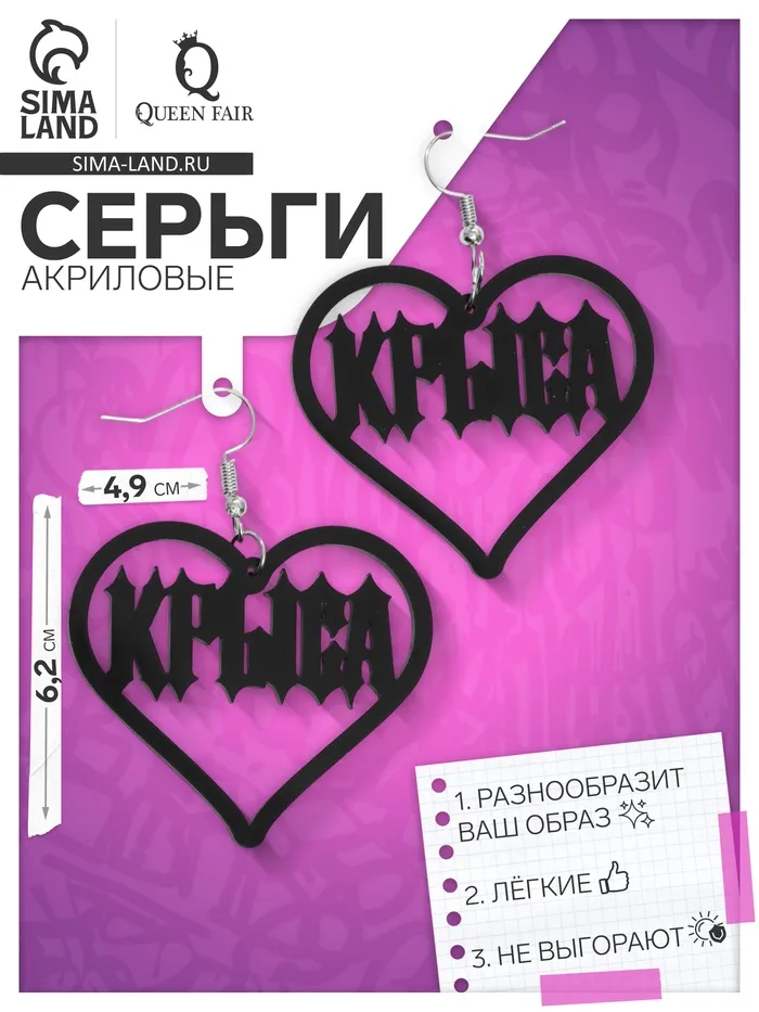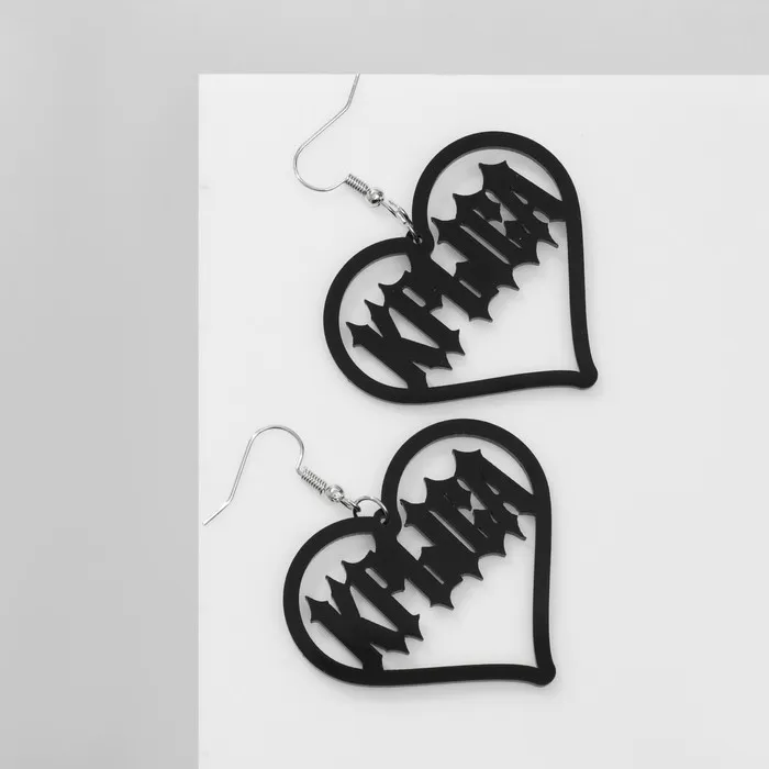Чёрные серьги с акриловыми вставками в форме сердца и забавной надписью «Крыса» — стильный аксессуар для тех, кто ценит оригинальность и лёгкую иронию в образе. Длина 6,2 см создаёт гармоничный баланс между заметностью и удобством, а серебристая фурнитура с замком-петлёй обеспечивает надёжное крепление и комфорт при носке.