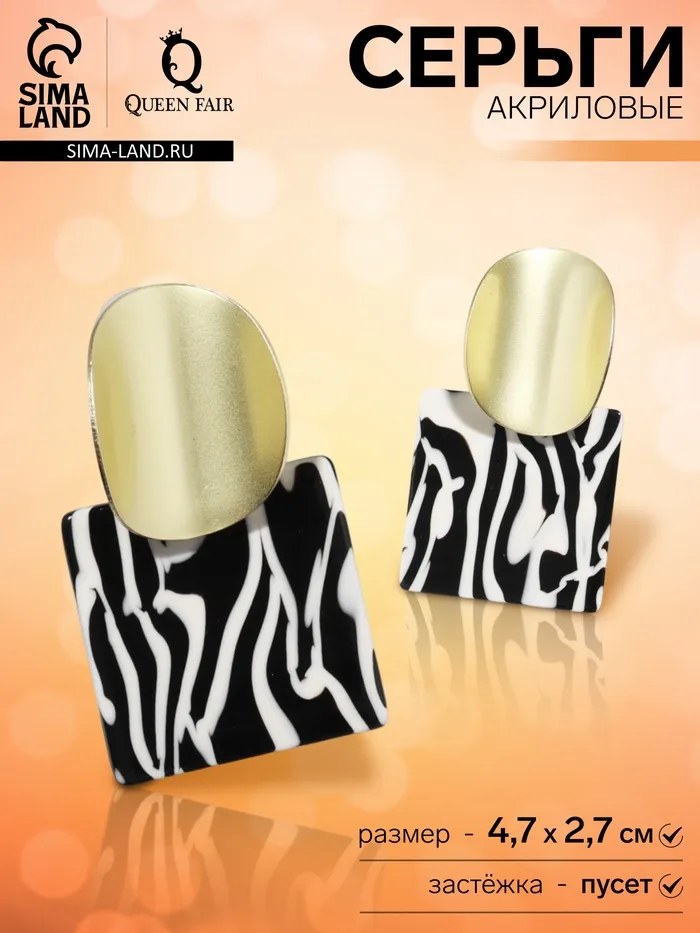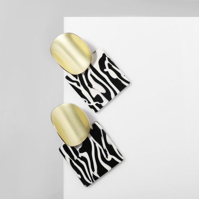 Серьги акриловые «Квадрат» с изогнутыми кругами, цвет чёрно-белый — Характеристики