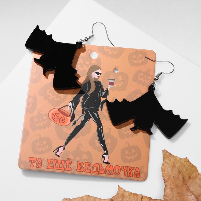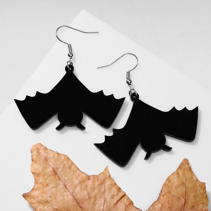 Серьги акриловые «Летучие мыши» большие, цвет чёрный в серебре — Характеристики