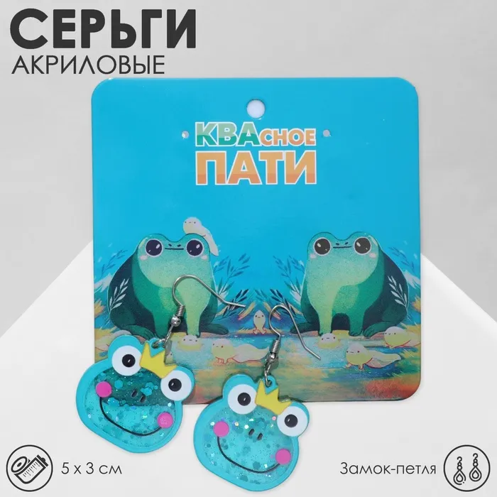 Серьги акриловые «Лягушки» королевы, цветные в серебре — Характеристики