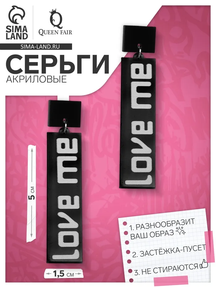 Серьги акриловые LOVE ME прямоугольные, цвет чёрно-белый — Характеристики