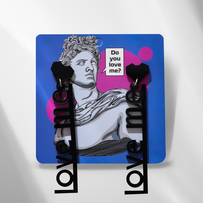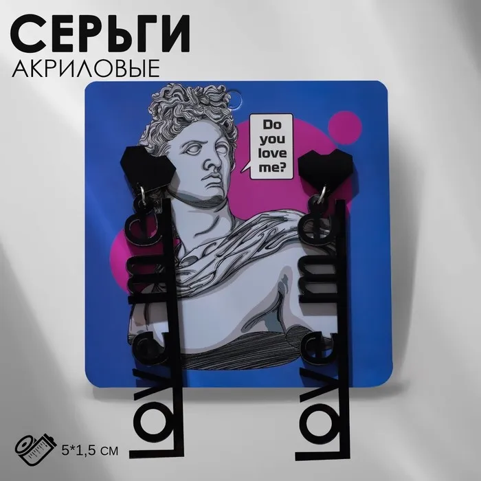 Серьги акриловые LOVE ME с сердечком, цвет чёрный в серебре — Характеристики