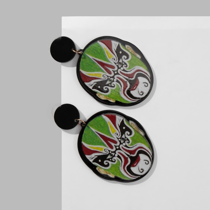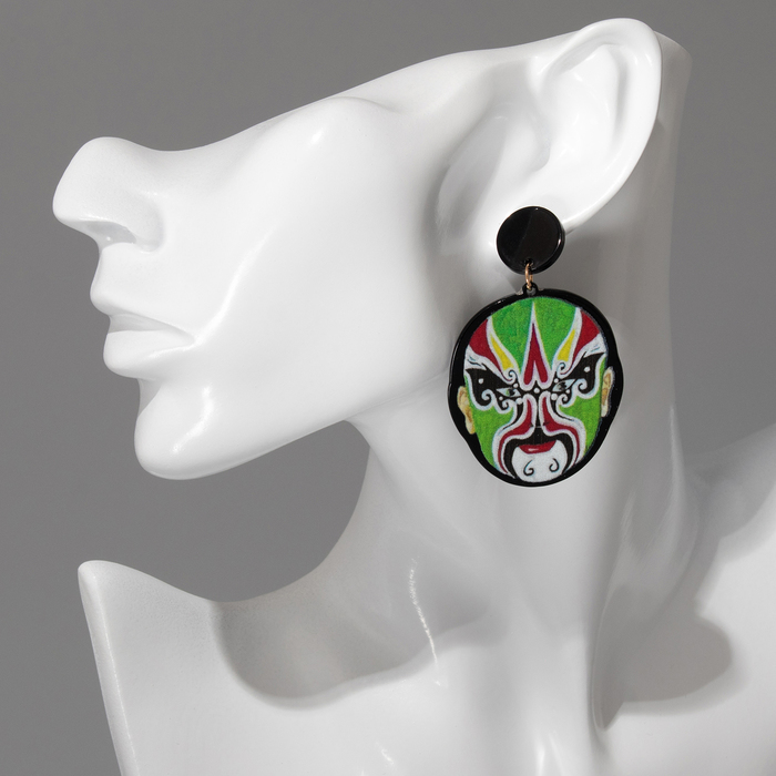 Яркие серьги с изображением традиционной китайской маски — это гармоничное сочетание этнического колорита и современного дизайна. Акриловые вставки в насыщенной разноцветной палитре придают украшению живость и выразительность, а золотистая металлическая основа добавляет элегантности и изящества.