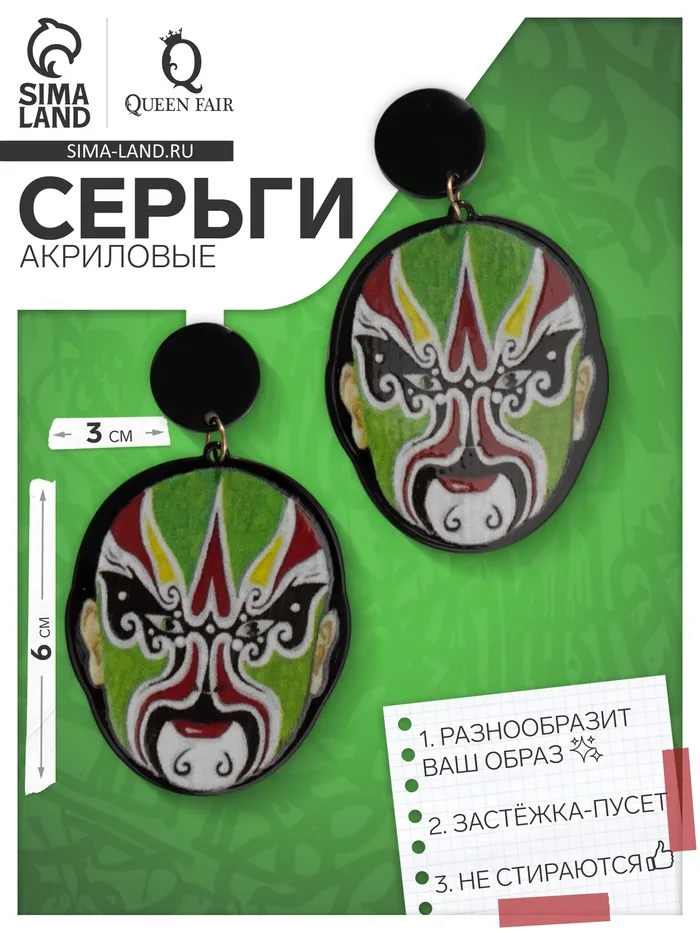 Серьги акриловые «Маска» китайская, цветные — Характеристики