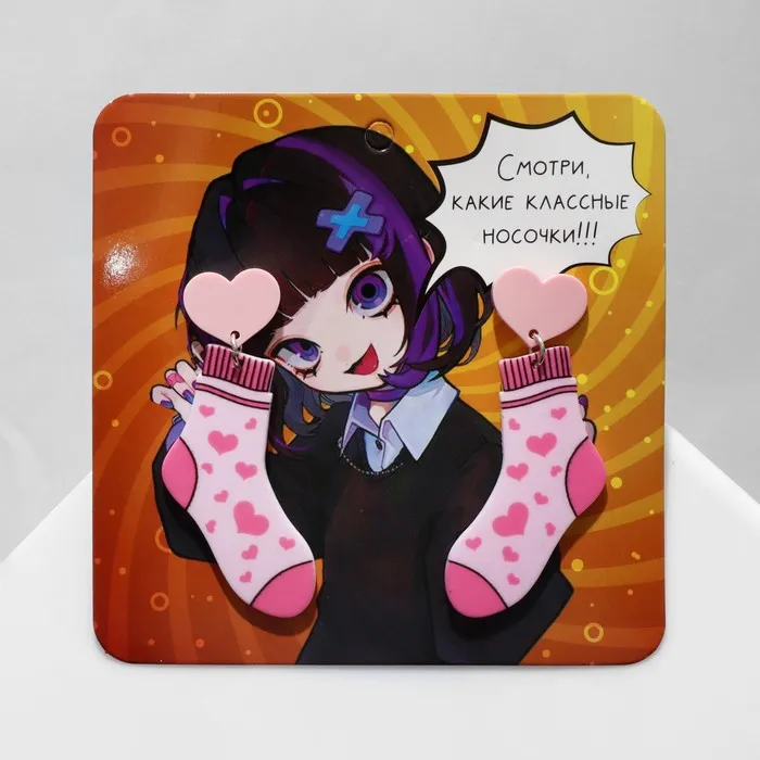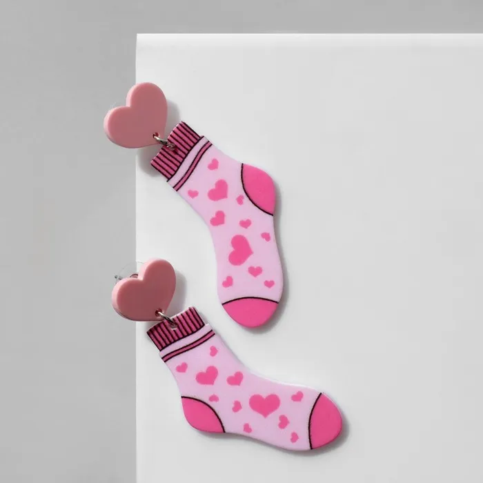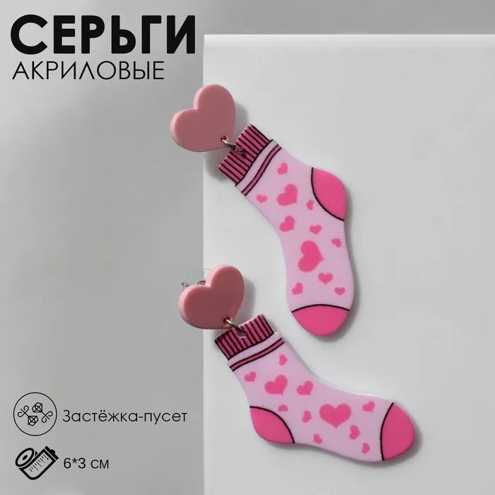 Серьги акриловые «Носки», цвет розовый в серебре — Характеристики