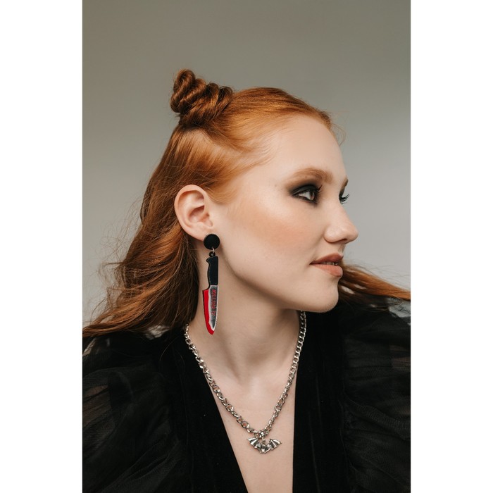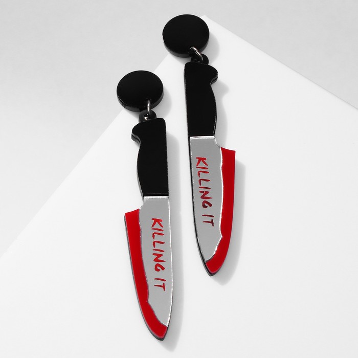 Серьги акриловые «Ножи» окровавленные, цвет красно-белый в чёрном металле — Характеристики