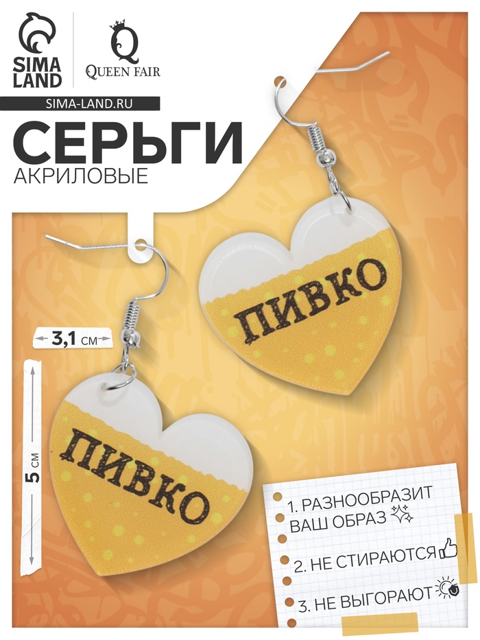 Серьги акриловые «Пивко», цвет жёлто-белый — Характеристики