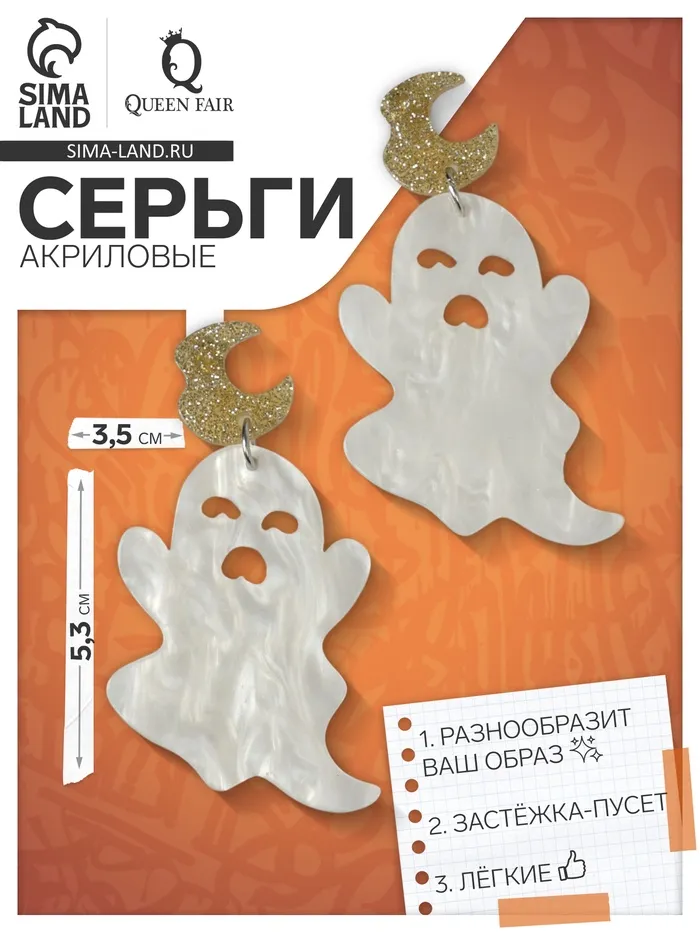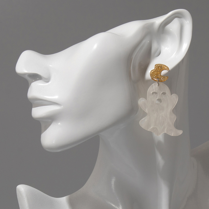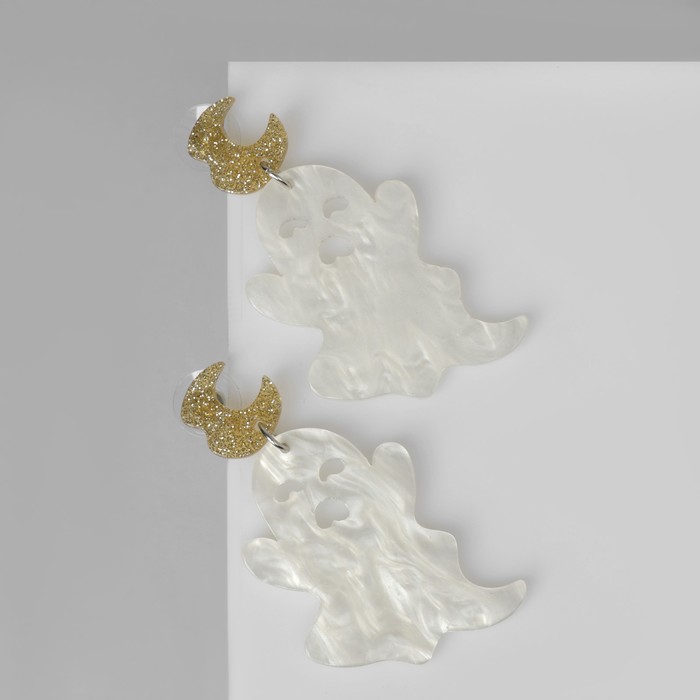 Серьги акриловые «Привидения» простыни, цвет бело-золотистый в серебре — Характеристики