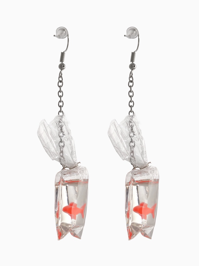Серьги акриловые «Рыбка в пакете», оранжевые