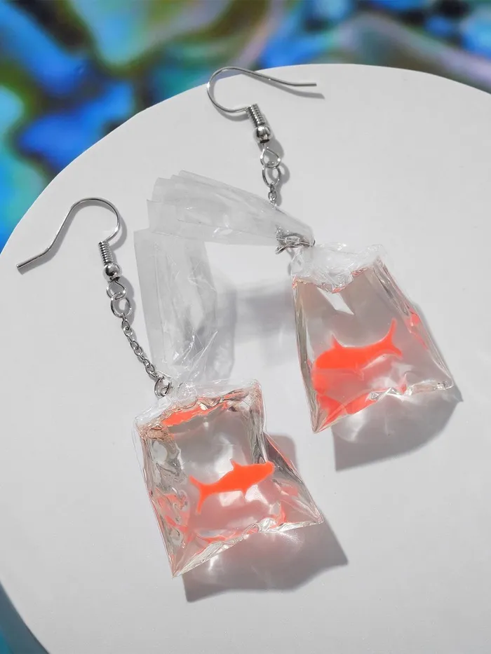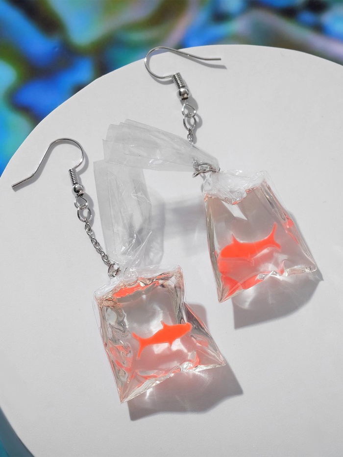 Представьте украшение, которое переносит в мир подводных приключений и ярких эмоций — оранжевые серьги с акриловой рыбкой в прозрачном пакете. Металлическая основа с серебристой фурнитурой и замком-петлей обеспечивает надёжную фиксацию, а пластиковая вставка в виде забавной рыбки добавляет лёгкости и игривости в образ.