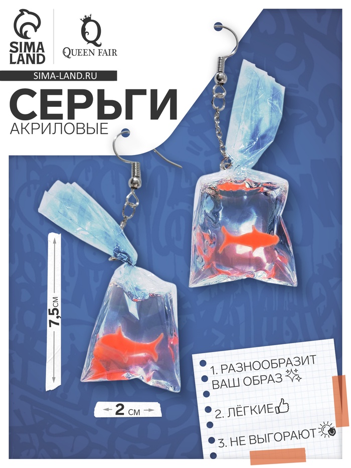 Серьги акриловые «Рыбка в пакете», оранжевые — Характеристики