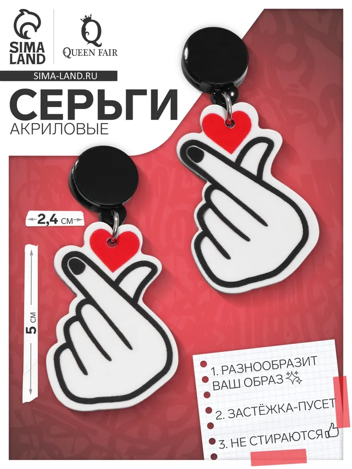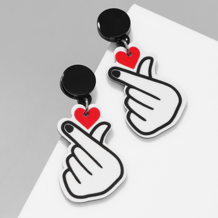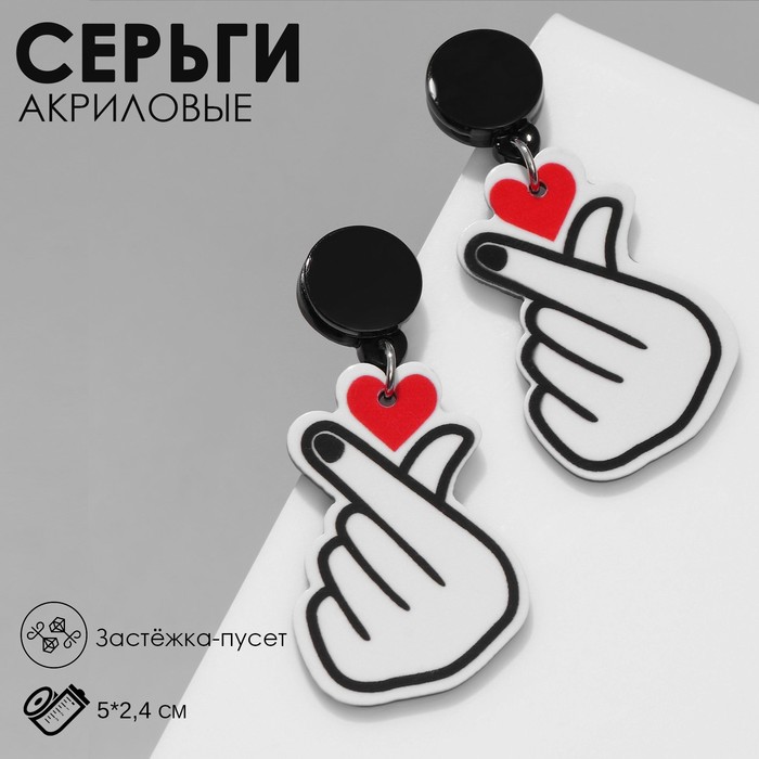 Серьги акриловые «Сердечко» пальчики, цветные в серебре — Характеристики
