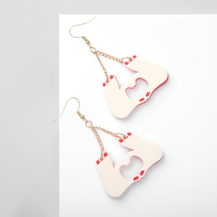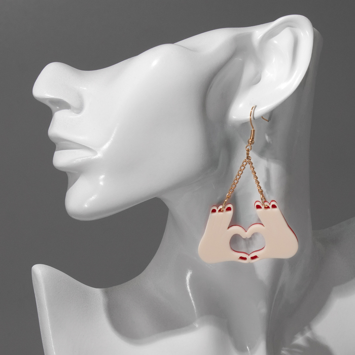 Серьги акриловые «Сердца» жесты, цвет красно-молочный в золоте — Характеристики
