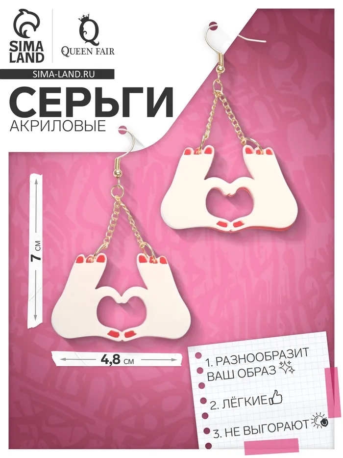 Акриловые серьги с выразительным дизайном в виде сердечек-жестов — это современный аксессуар, который подчеркнёт вашу индивидуальность и добавит в образ нотки нежности и тепла. Игра красно-молочных оттенков в сочетании с золотистой фурнитурой создаёт эффект изысканной гармонии и лёгкого сияния.